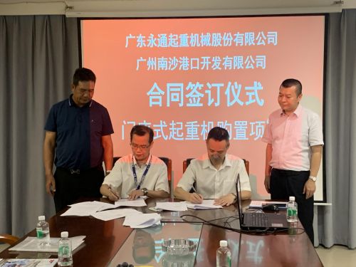 2023年6月07日,廣東永通起重機(jī)械股份有限公司與廣州南沙港口開發(fā)有限公司在永通重機(jī)總部舉行門座式起重機(jī)購置項(xiàng)目簽約儀式。